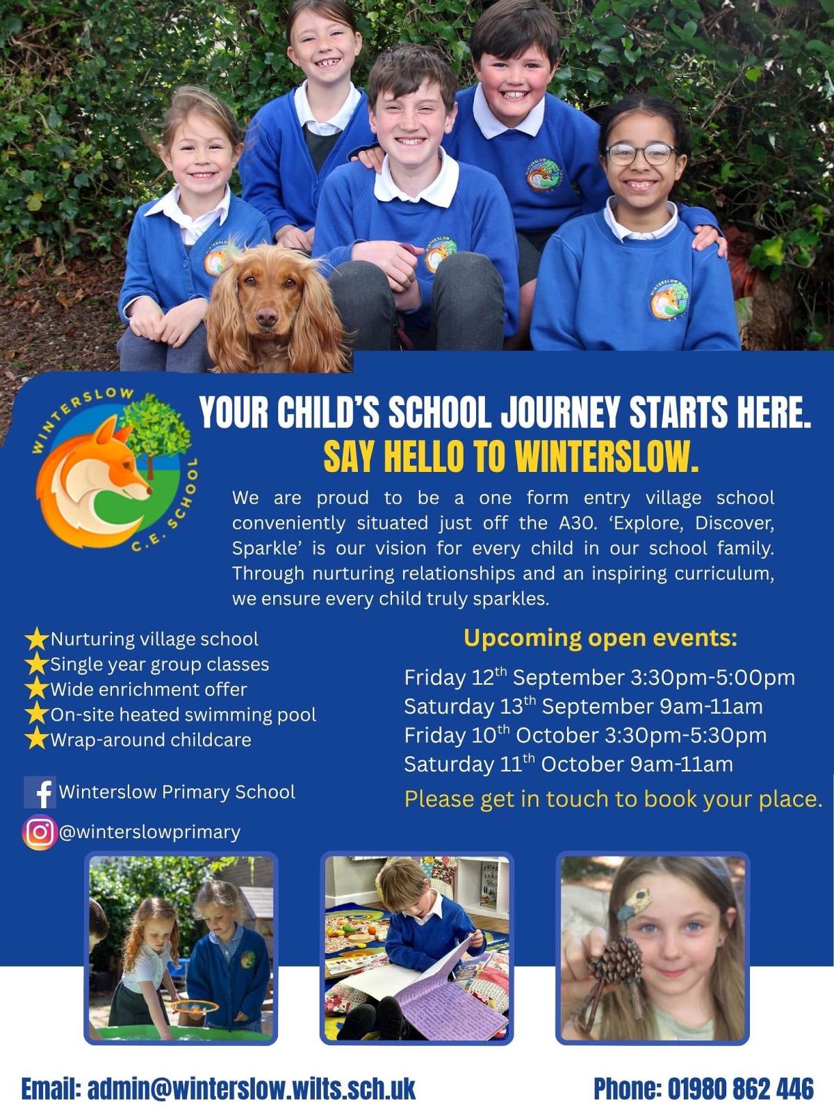 At Winterslow CE Primary School, we warmly welcome prospective families to our school as we know that visiting the school in person is the best way to truly understand what makes us such a special place for your child. We offer a variety of open events throughout the year so families can experience the atmosphere, meet our dedicated staff, and see our sparkle in action.